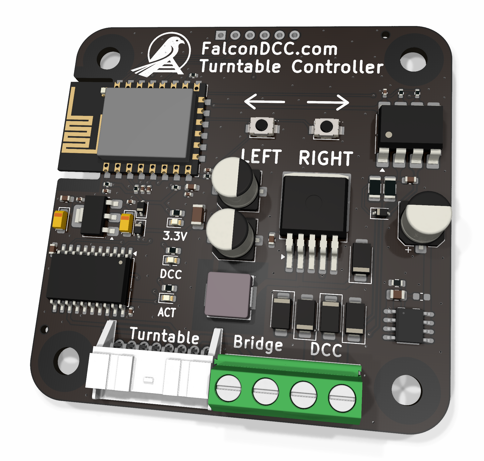 • Native Wi-Fi – join `FalconDCC Turntable` for first-time setup or use `turntable.local` once it’s on your home network.